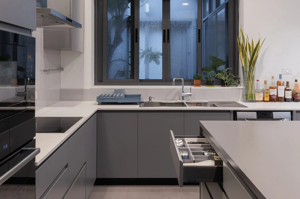 - Функциональность. Направляющие, доводчики, петли — все должно легко и бесшумно работать.
