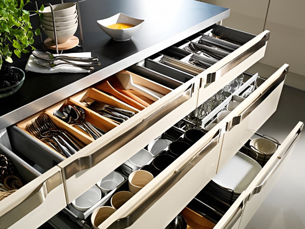 На кухні особливо цінується логічна організація. Контейнери, кошики та кухонні аксесуари дозволяють упорядкувати посуд, продукти й дрібну техніку, звільняючи робочі поверхні. Це покращує ергономіку та спрощує приготування їжі. Окрім того, добре організований простір сприяє дотриманню чистоти та порядку щодня.