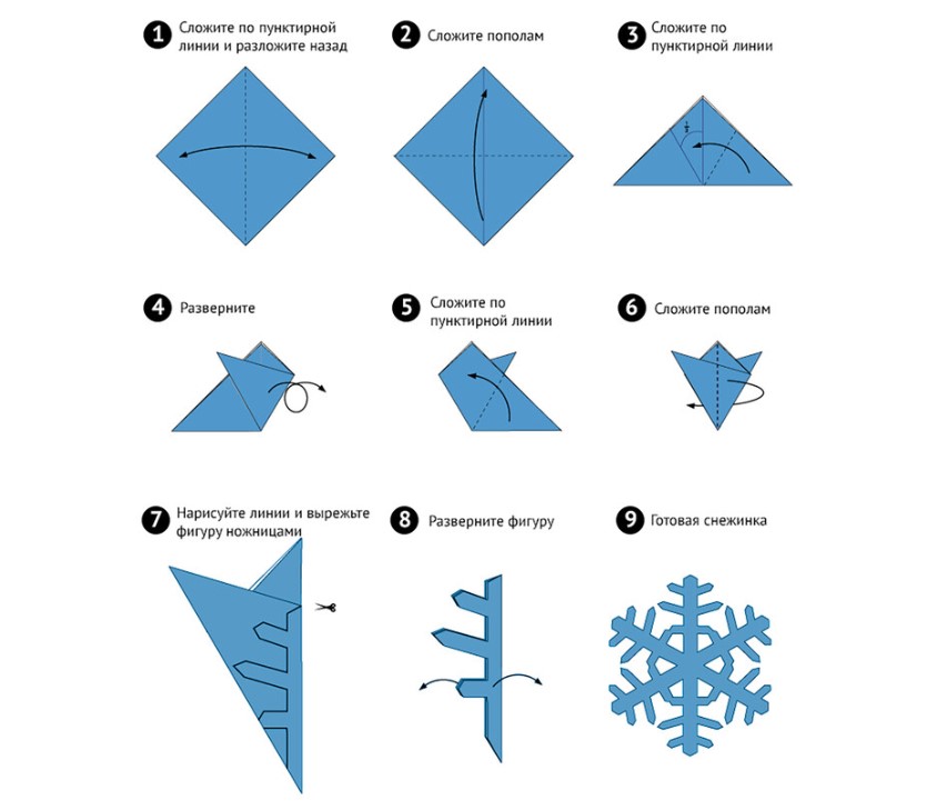 Тонкий папір легше складати та вирізати. З аркуша А4 вийде велика сніжинка, а з маленьких квадратів — мініатюрні прикраси для ялинки чи гірлянди.