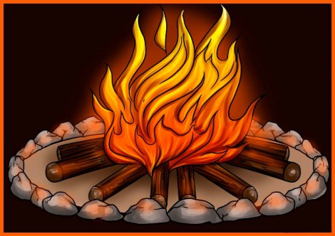 Для тіней використовуйте штрихування. Темна частина біля основи переходить у світлу на кінчиках. Щоб намалювати вогонь в каміні, спершу зобразіть камін з цегли, потім додайте дрова. Полум’я малюйте над ними, з іскрами та димом для атмосфери.