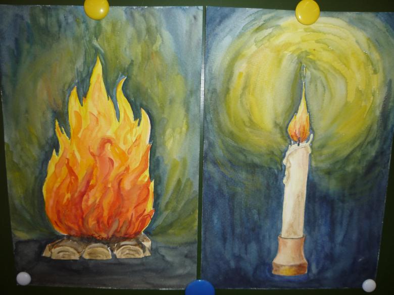Фарби дозволяють передати колір і світло. Як намалювати вогонь фарбами: використовуйте акварель чи гуаш. Почніть з жовтого в центрі, додайте помаранчевий і червоний на краях.